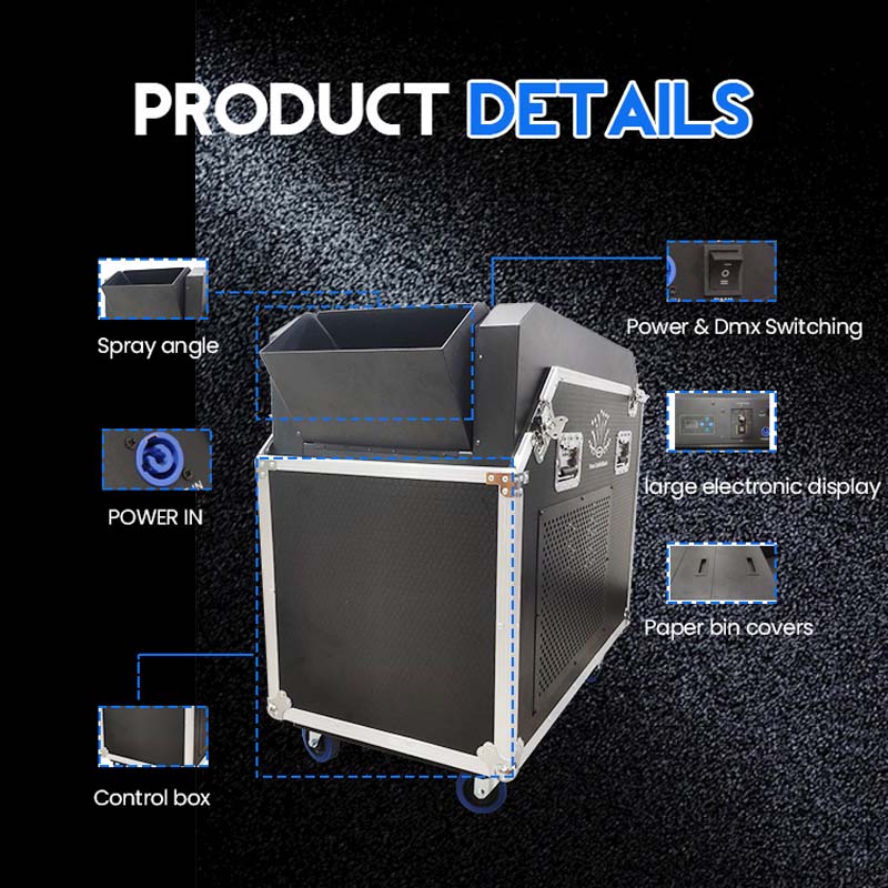 6. تأثيرات بصرية فريدة من نوعها: من خلال الرياح القوية والمعلمات القابلة للتعديل، قم بإنشاء تأثير نفخ ورق فريد من نوعه، وتعزيز نقاط الجاذبية والذاكرة للحدث.